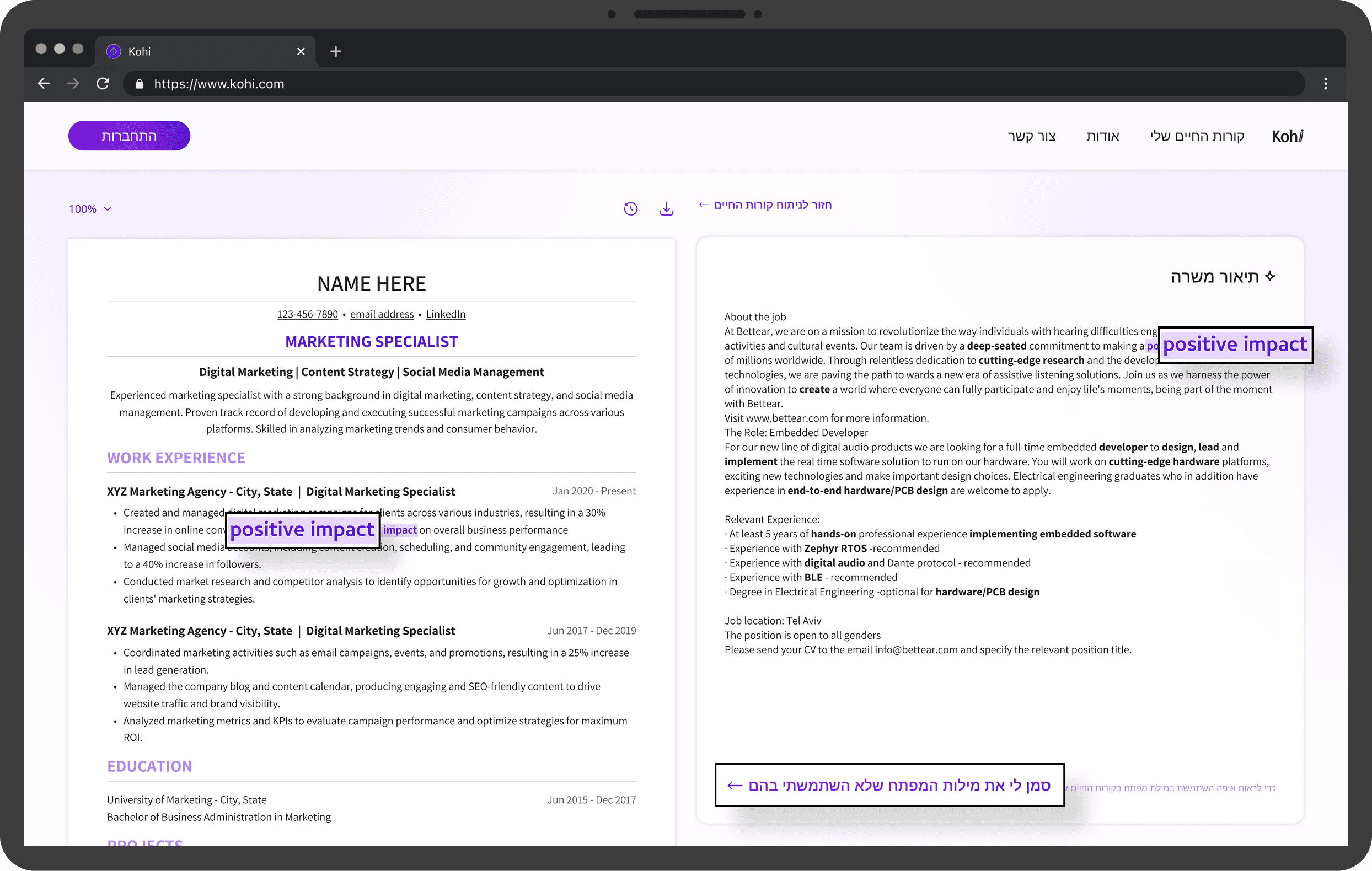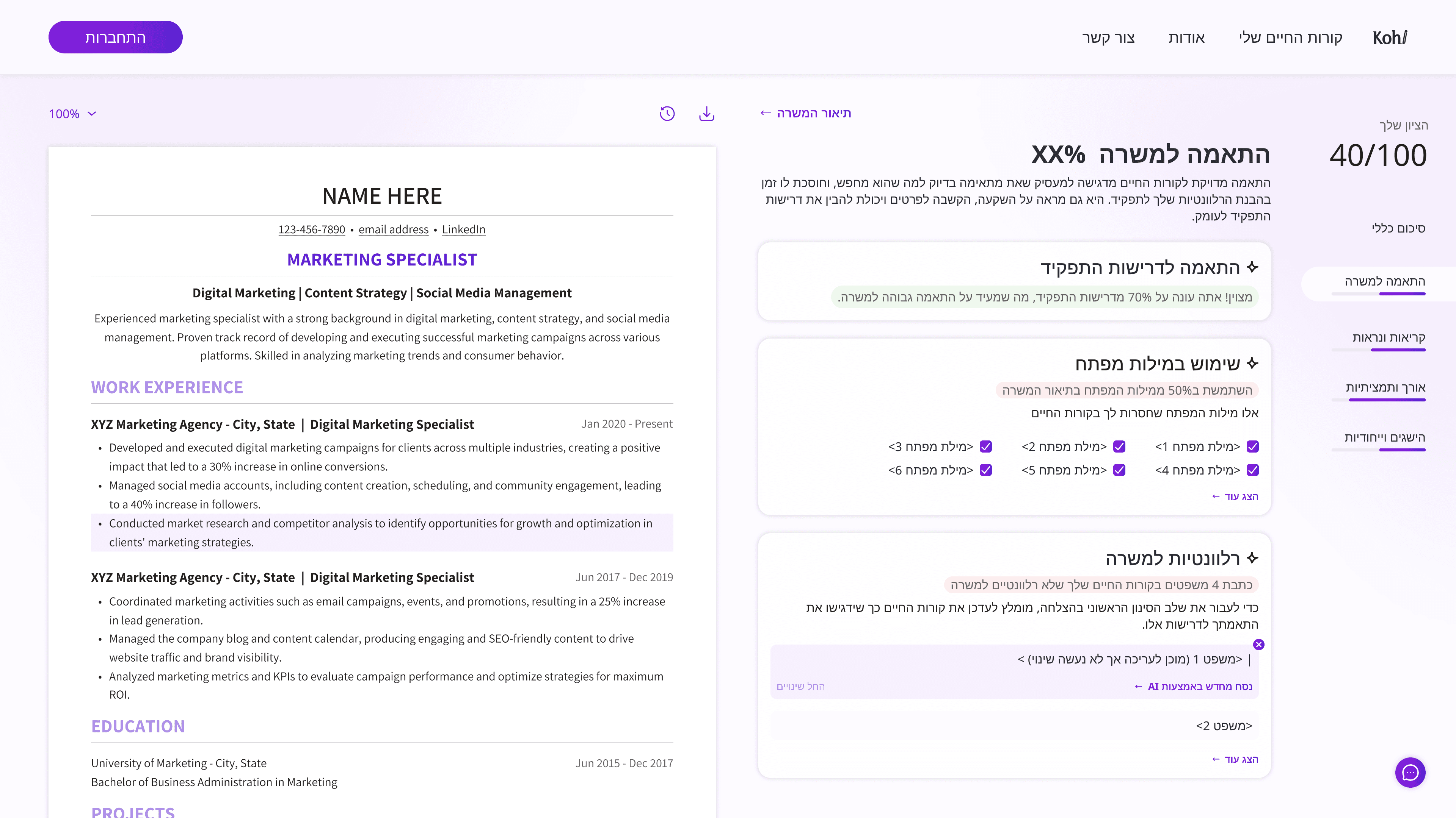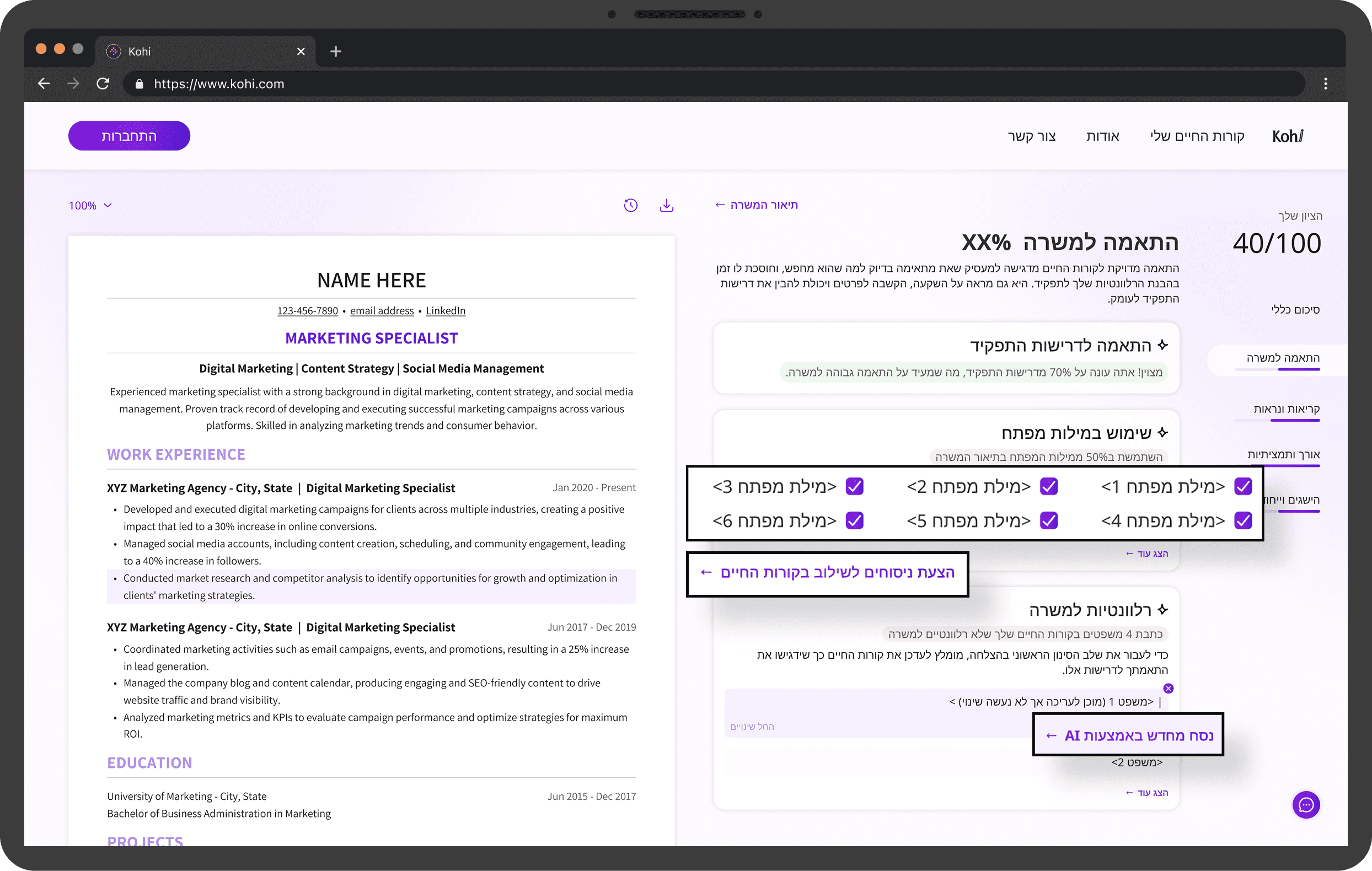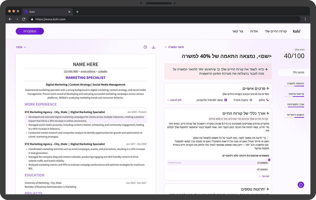 In today’s competitive tech market, even highly qualified candidates struggle to pass the initial screening stage. Applicant Tracking Systems (ATS) software that filters resumes automatically, often reject strong candidates due to formatting or wording issues. Kohi uses in-house AI tailored to these systems to help candidates get through the filters and access real opportunities.