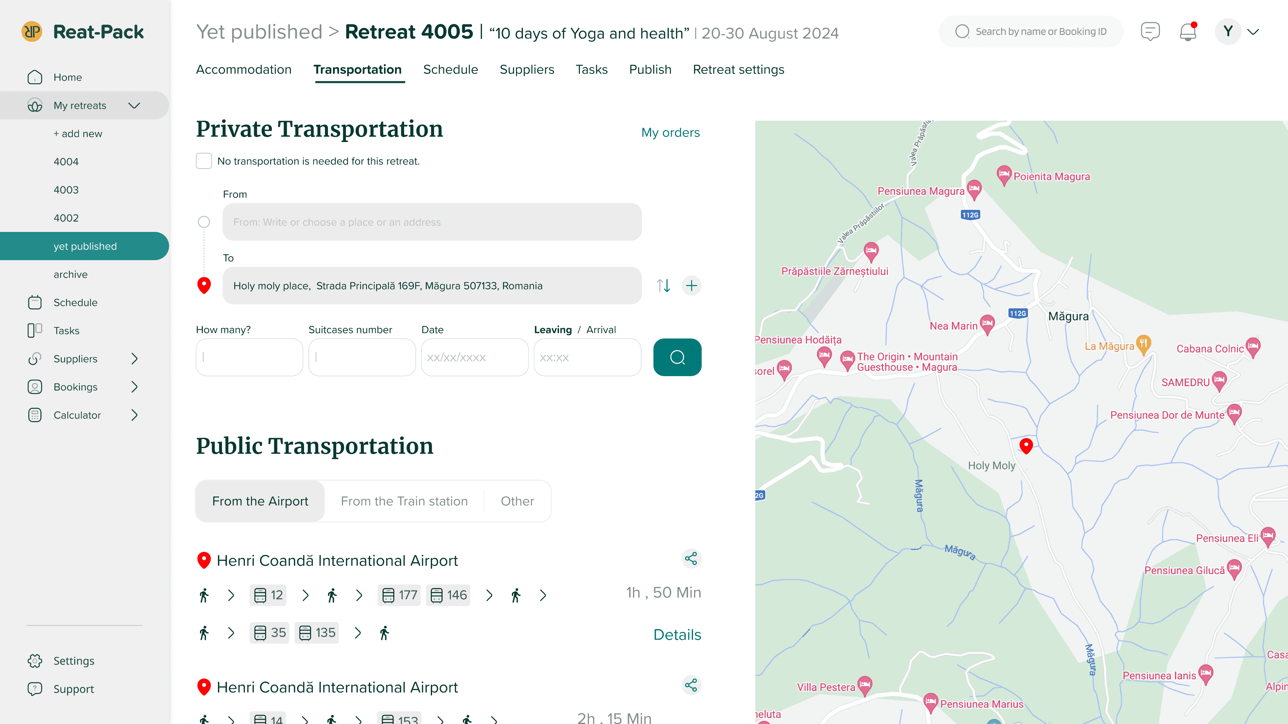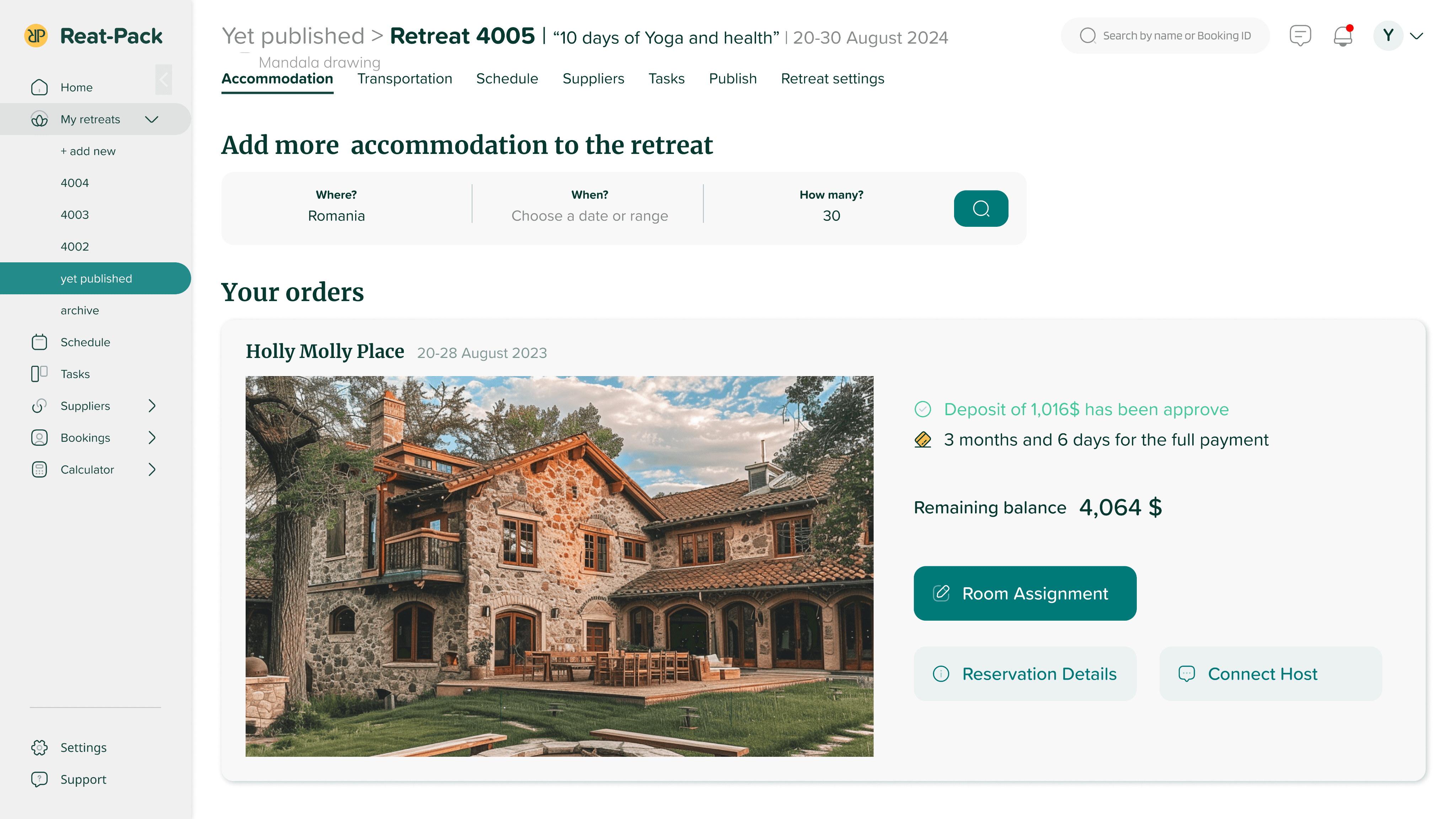 Users can book multiple accommodations, ideal for retreats in isolated places that far from airports and train stations.