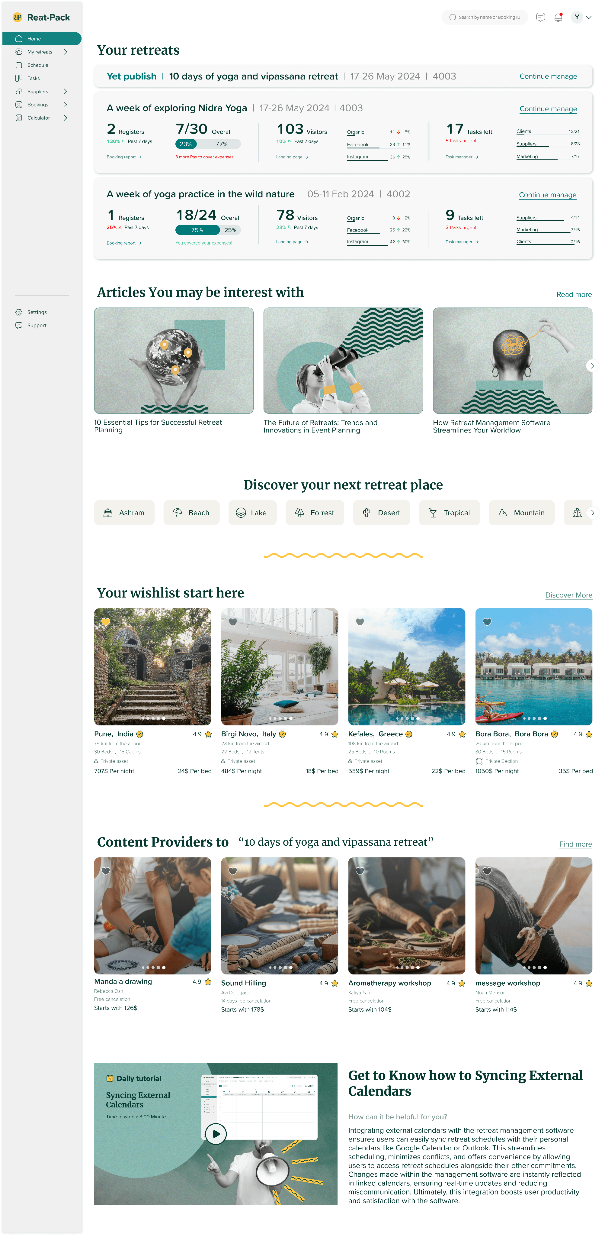 A software platform for retreat organizers that: